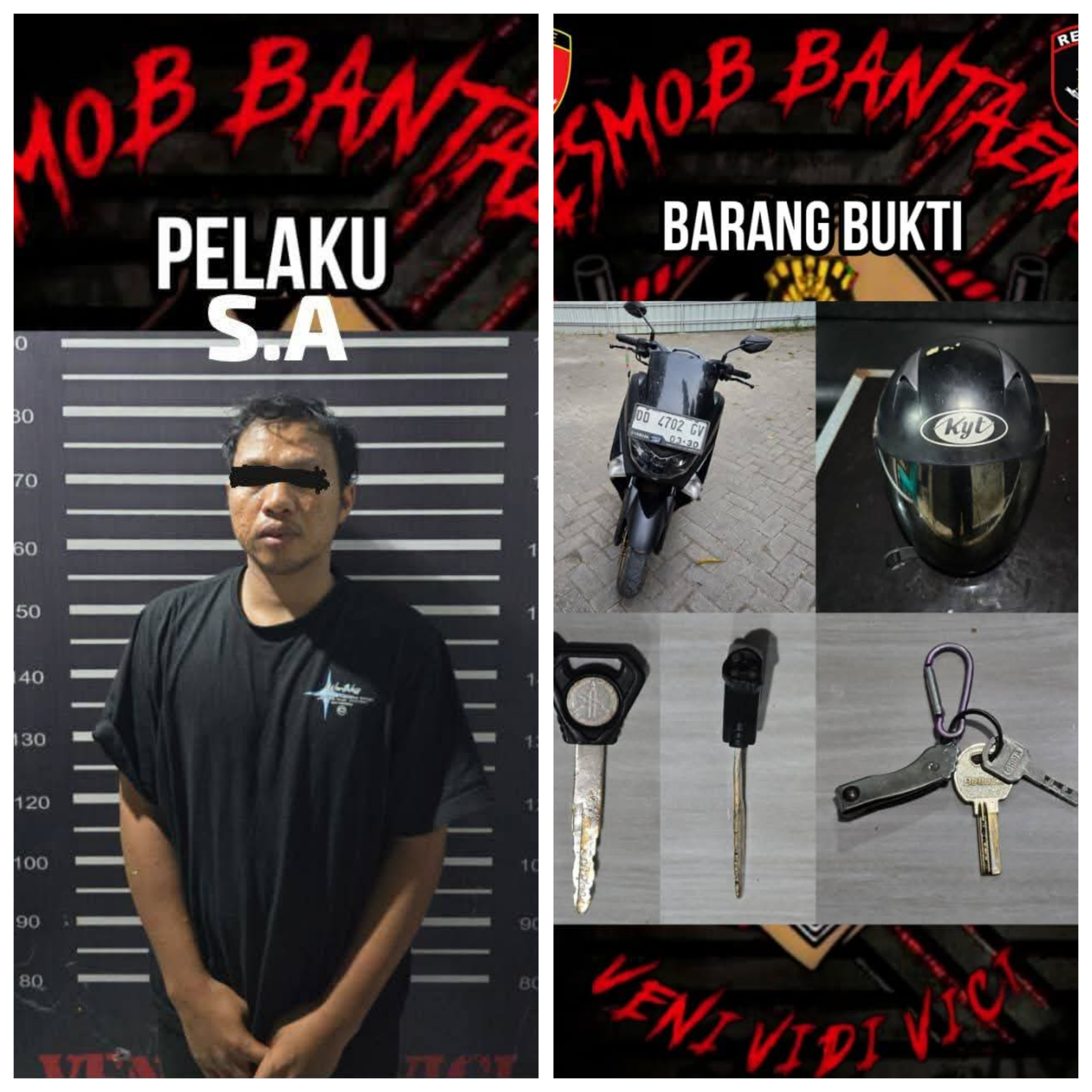 Terduga pelaku Tindak Pidana Pencurian (Curanmor) yang terjadi pada hari Senin 10 November 2025 diarea parkiran Rumah Sakit Anwar Makkatutu Bantaeng